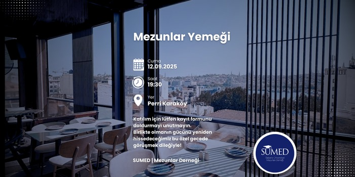 12 Eylül Cuma akşamı, İstanbul’un tarihi atmosferinde, Perri Karaköy’de keyifli bir akşam yemeğinde buluşuyoruz. Eski dostlarla hasret gidermek, yeni bağlantılar kurmak ve güzel anılar biriktirmek için sizleri bekliyoruz.